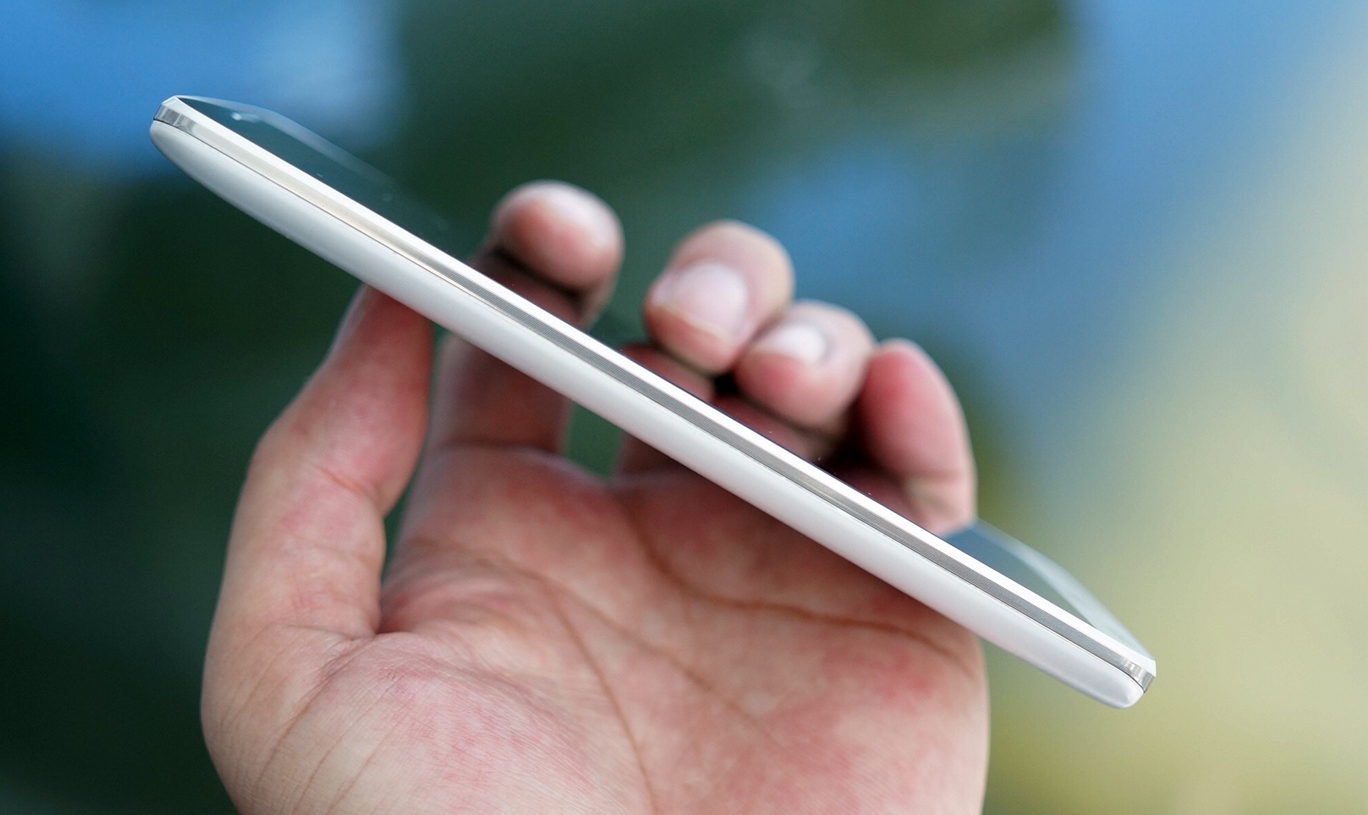 | Chất liệu nhựa trên máy cho cảm giác nhẹ, không đầm tay như HTC One M8. |