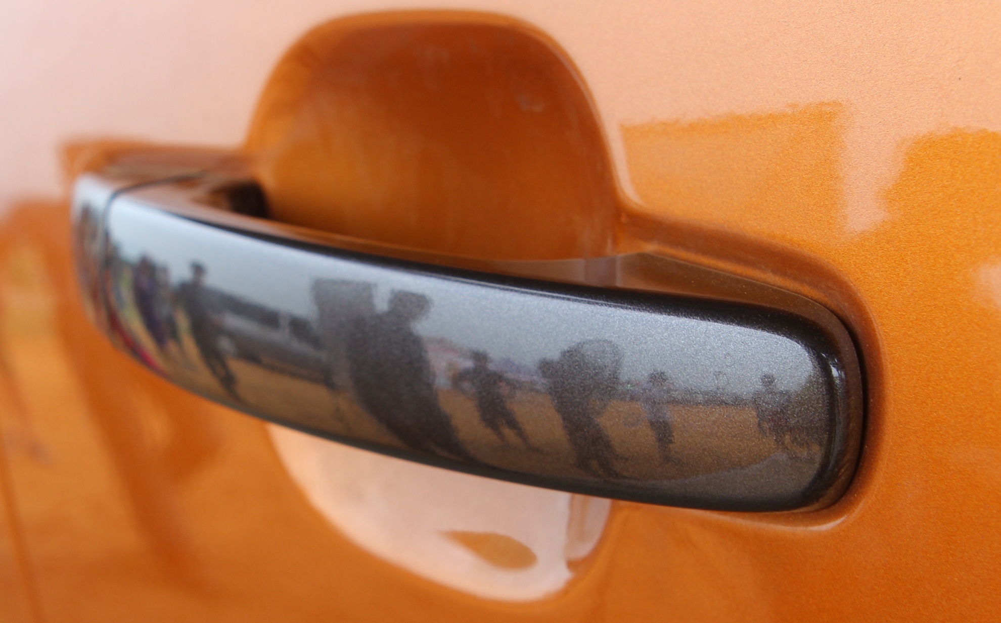 | Tay nắm mở cửa cũng có màu xám. |