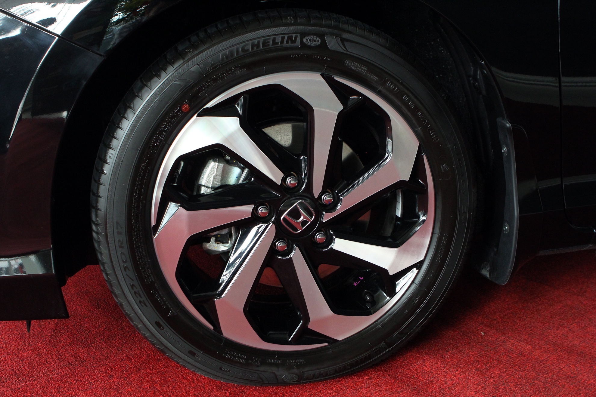 | La-zăng thiết kế giống ở mẫu xe Honda CR-V phiên bản 2.4L. Xe sử dụng lốp Michellin. |