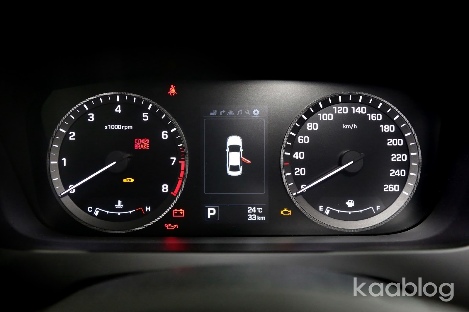 Hyundai được trang bị nhiều công nghệ hiện đại, như kiểm soát hành trình thông minh ASCC, hệ thống phát hiện điểm mù, giám sát làn đường, mở cốp tự động, túi khí bảo vệ đầu gối, ghế sưởi phía sau...
