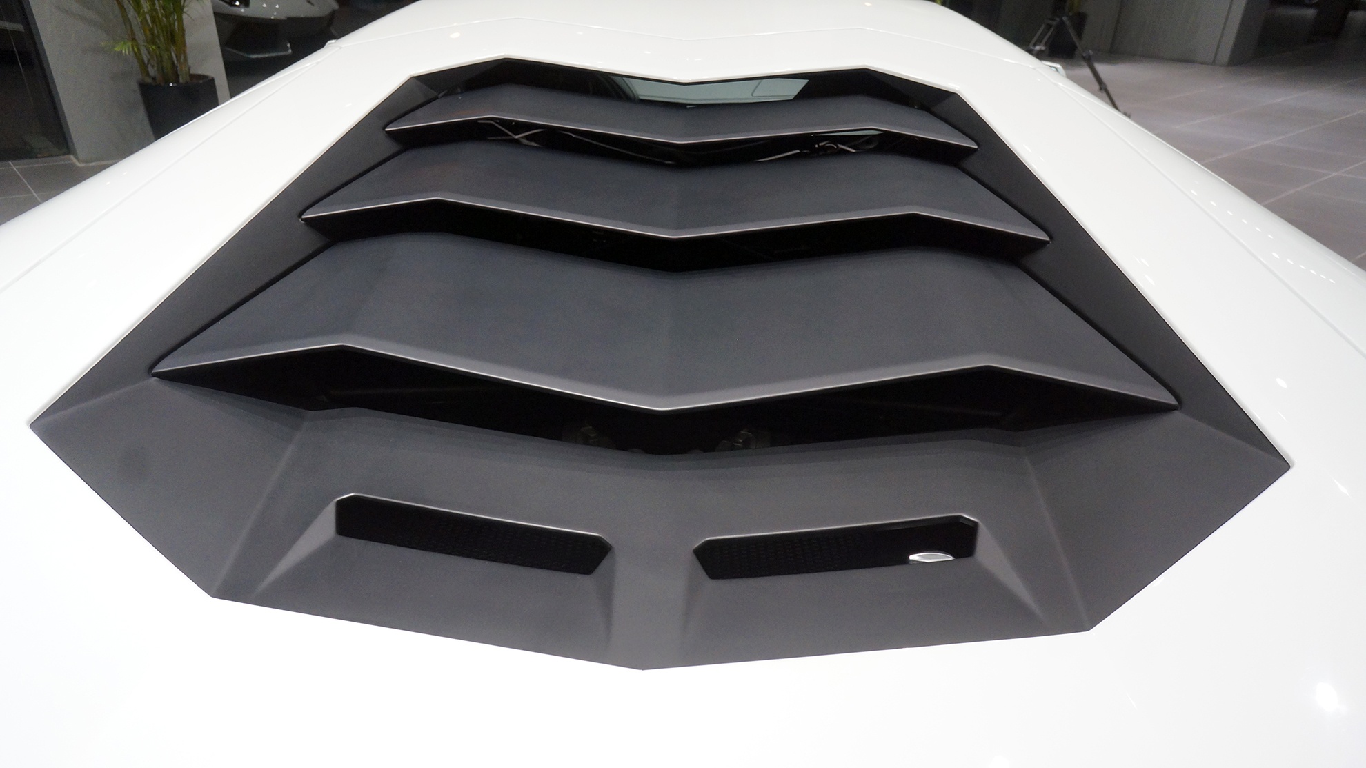 | Lamborghini Aventador có cabin liền khối chế tạo, nắp khoang động cơ, cánh gió và cửa hút gió bên hông làm bằng sợi carbon. Phần trước và sau xe chế tạo bằng hợp kim nhôm. |