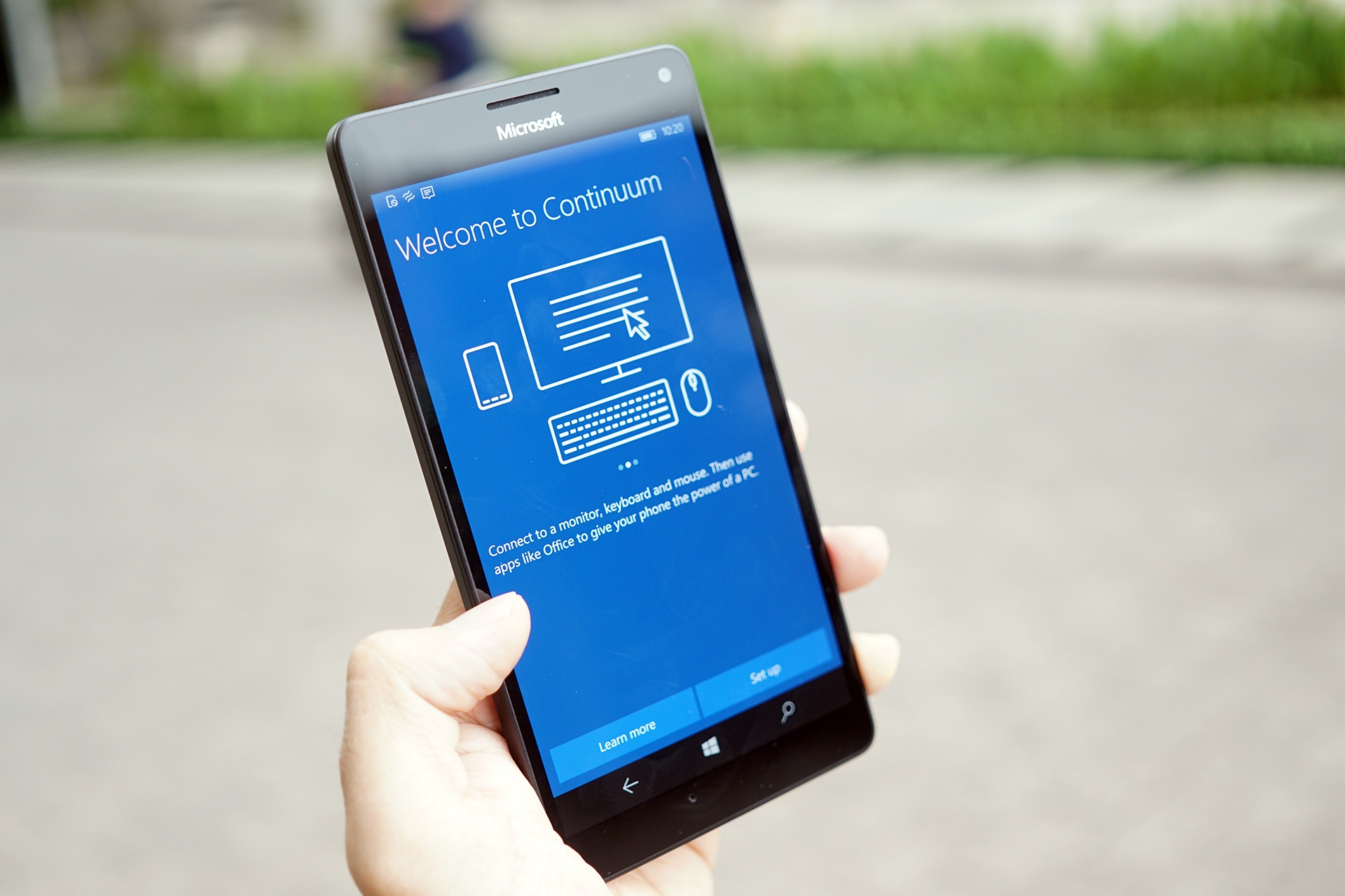 | Người dùng Lumia 950 XL có thể kết nối có dây hoặc không dây với màn hình và phụ kiện để sử dụng như một chiếc máy tính bàn. |