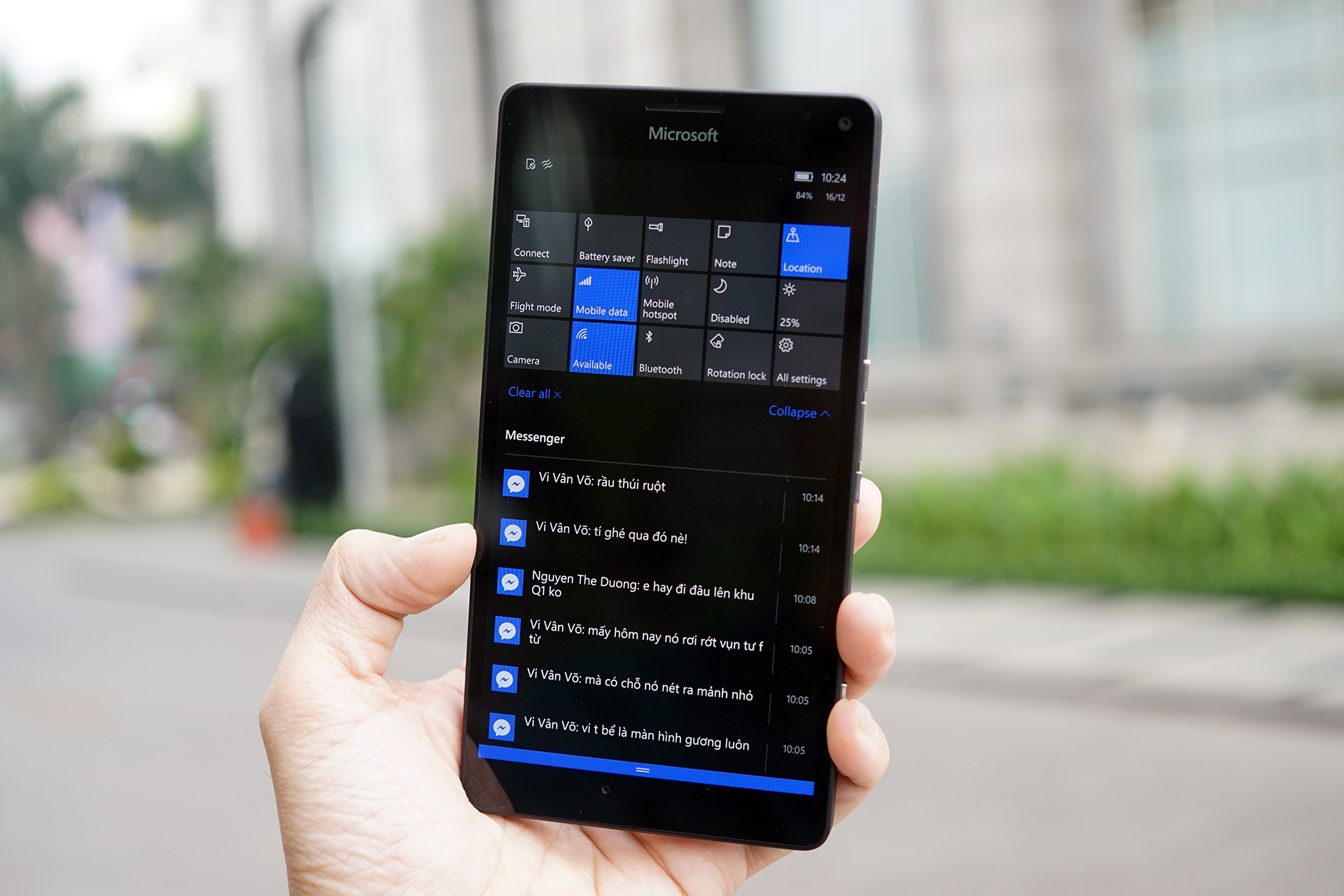 | Giao diện của Windows 10 Mobile khá nhẹ nhàng và đẹp mắt. |
