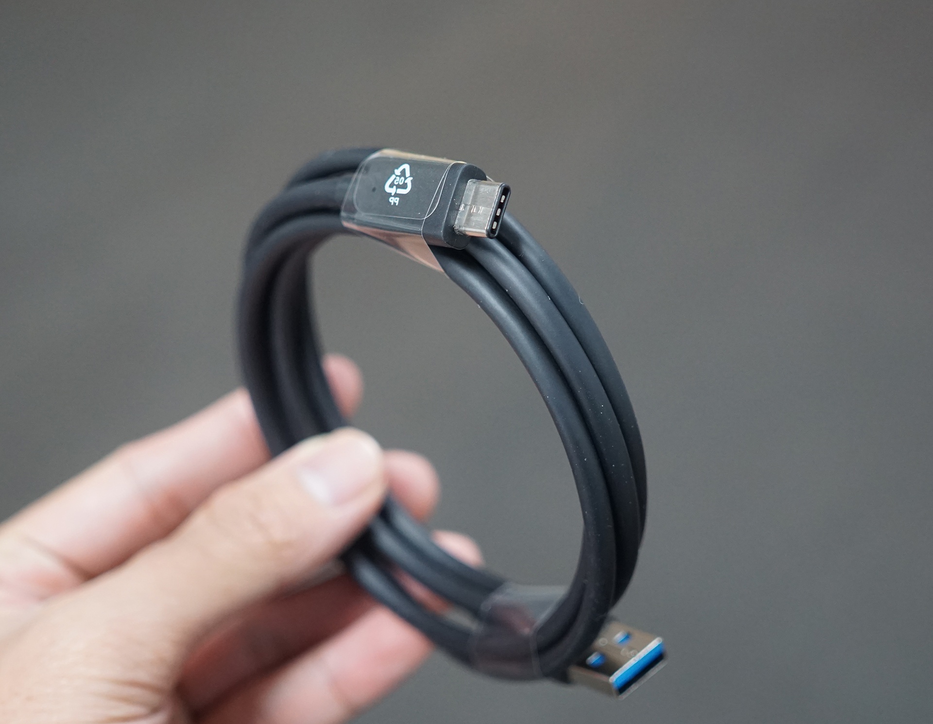 | Dây cáp USB-C có tiết diện khá lớn. |