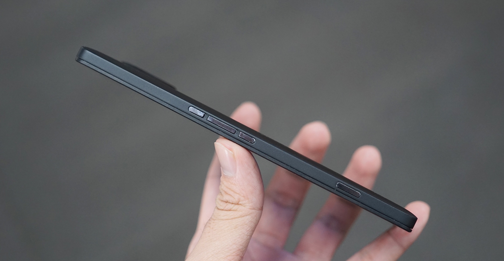 | Loạt phím cứng và phím camera quen thuộc ở cạnh phải. |