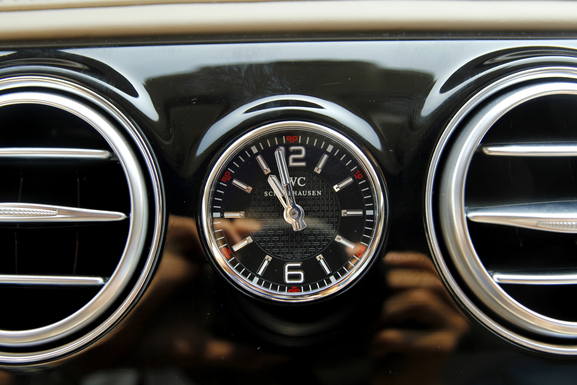 | Đồng hồ cơ Thụy Sĩ hiệu IWC được đặt ở bảng điều khiển trung tâm. |