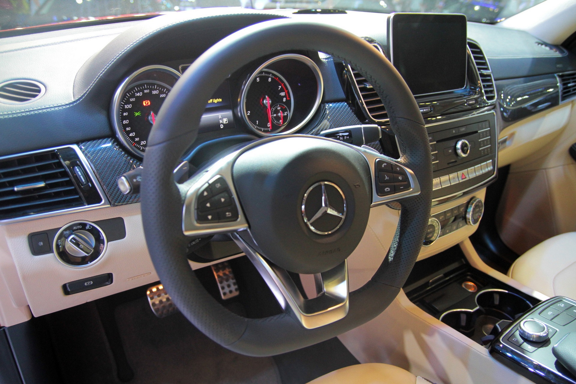 | Với mức giá 4 tỷ đồng, GLE 450 AMG Coupe có nội thất cao cấp tương xứng. Bảng táp-lô, mặt trong cánh cửa bọc carbon là những vật liệu đắt tiền thường xuất hiện trên những mẫu xe thể thao sang trọng. |