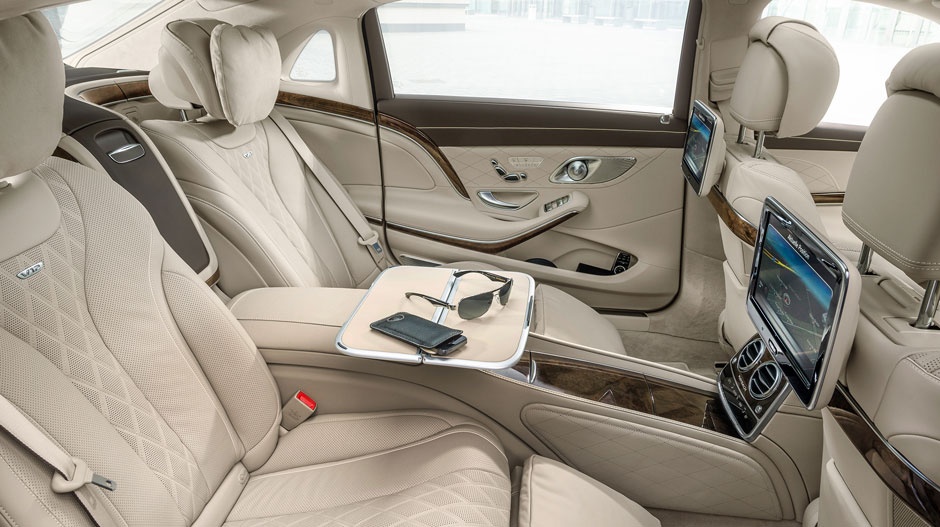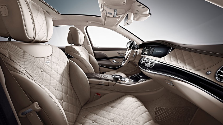 Khoảng duỗi chân phía sau được tăng thêm 20cm, vì vậy hành khách phía sau có thể thoải mái co duỗi đôi chân mà không lo đụng vào hàng ghế trước. Tất cả da bọc nội thất đều được khâu bằng tay bởi những người thợ lành nghề, với những mũi khâu đều tăm tắp. Da Nappa được bao phủ toàn bộ nội thất, bao gồm các trụ, ốp cửa, ghế hành khách, gối và ốp bảng điều khiển. Gỗ óc chó xuất hiện nhiều trên bảng điều khiển trung tâm, bệ đặt tay. Mercedes-Maybach có sẵn 7 gói nội thất để khách hàng thoải mái lựa chọn.