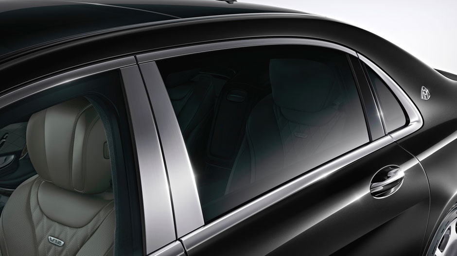 | Về ngoại hình, đặc điểm phân biệt Mercedes-Maybach S600 là logo hai chữ M trên những chiếc Maybach huyền thoại cách điệu được đặt ngay trụ C. |