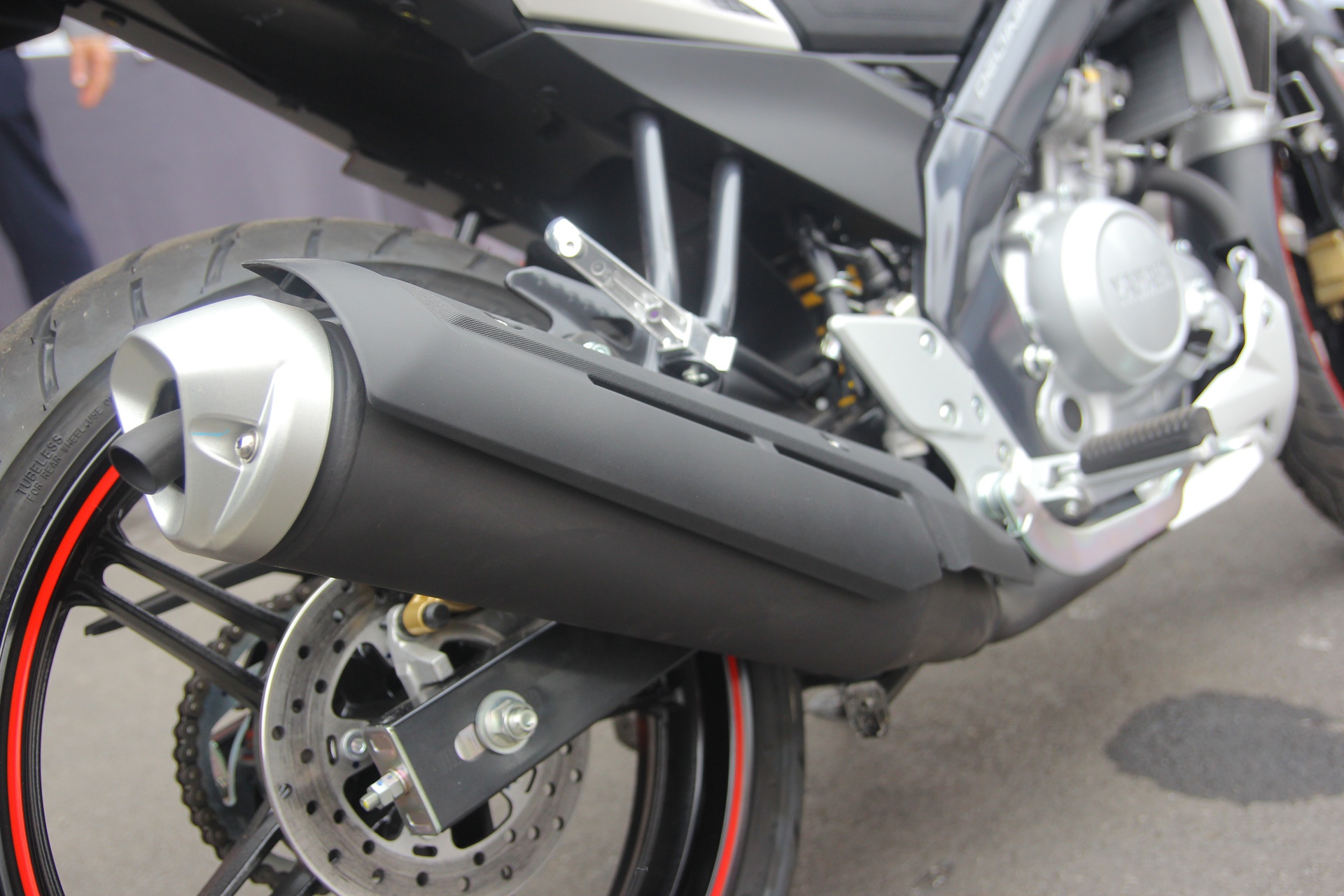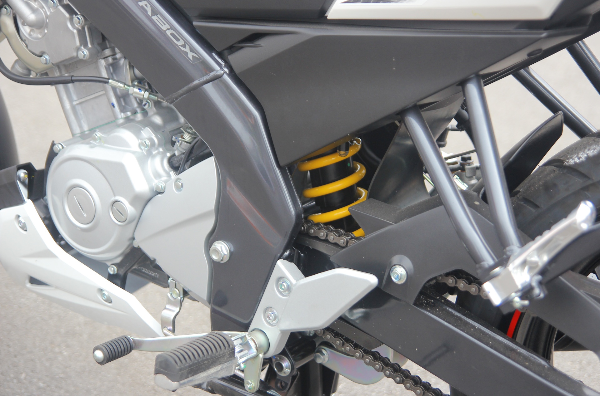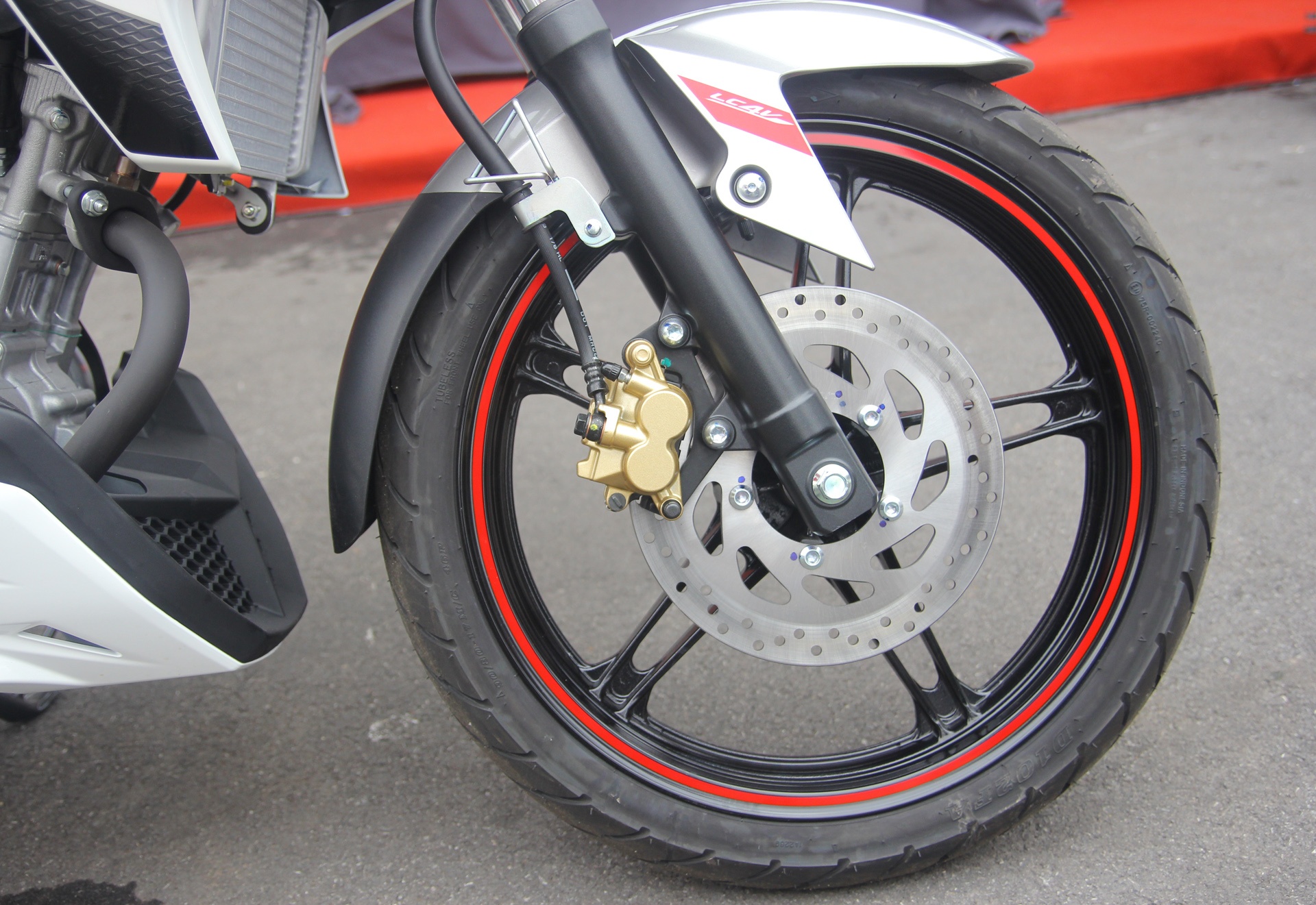 | Lốp trước kích thước 90/80-17, vành đúc 5 chấu thể thao, phanh đĩa thủy lực. |