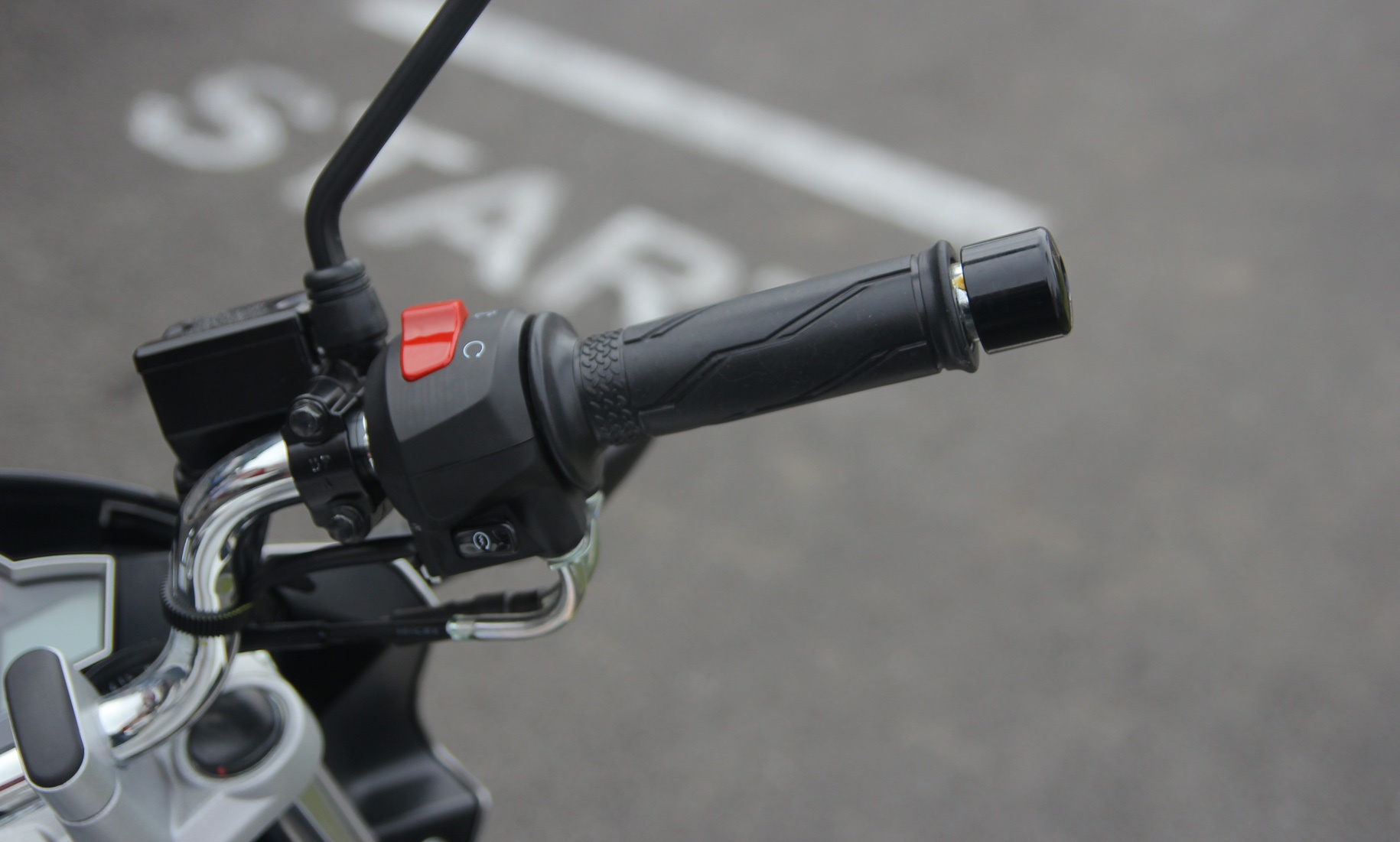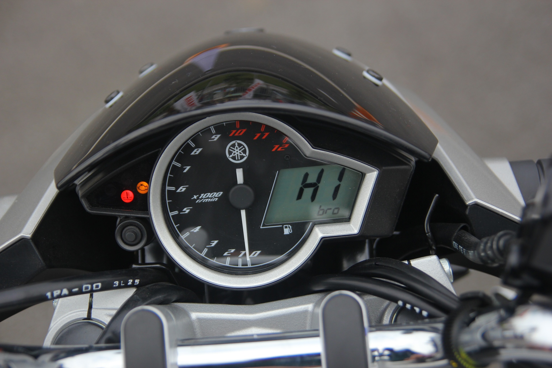 | Cụm đồng hồ thiết kế ấn tượng, kết hợp dạng điện tử cho các thông số như công-tơ-mét, hành trình. Trong khi đó, đồng hồ vòng tua máy hiển thị dạng analog. Đồng hồ điện tử của xe luôn hiện lên dòng chữ "Hi bro" khá vui mắt khi người dùng mở khóa điện. |