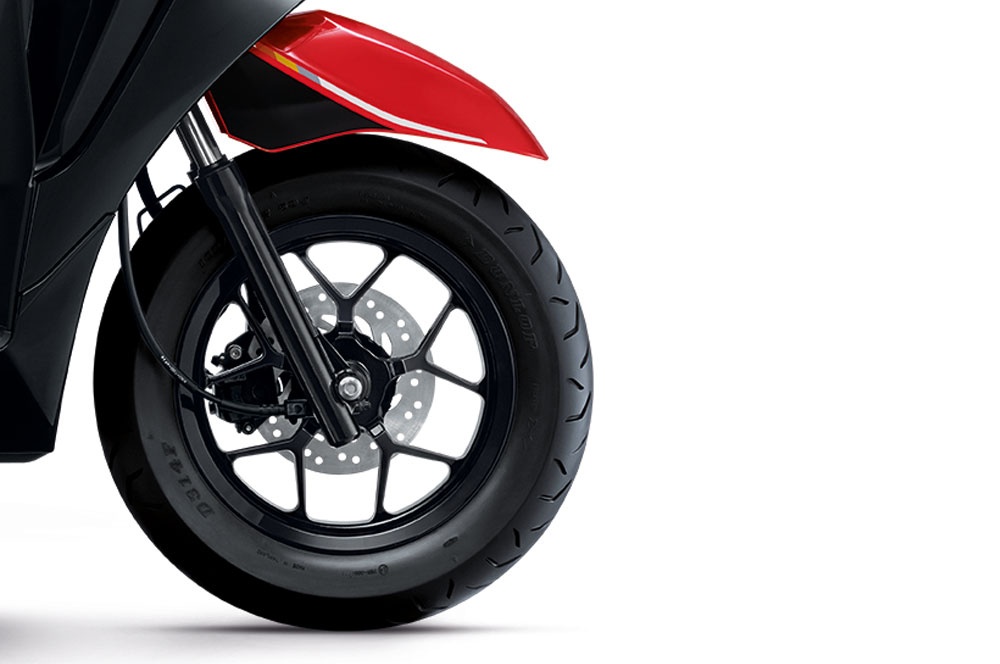 | Lốp trước không săm kích thước 100/90-12, đi cùng bộ vành đúc 5 chấu đôi. Trang bị an toàn phía trước là hệ thống phanh đĩa thủy lực, tích hợp chức năng phanh kết hợp Combi Brake. |