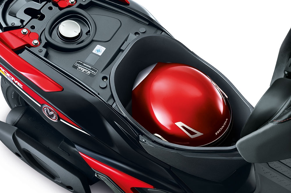 | Cốp đựng đồ bên dưới yên xe có khả năng chứa vừa mũ bảo hiểm cả đầu. |
