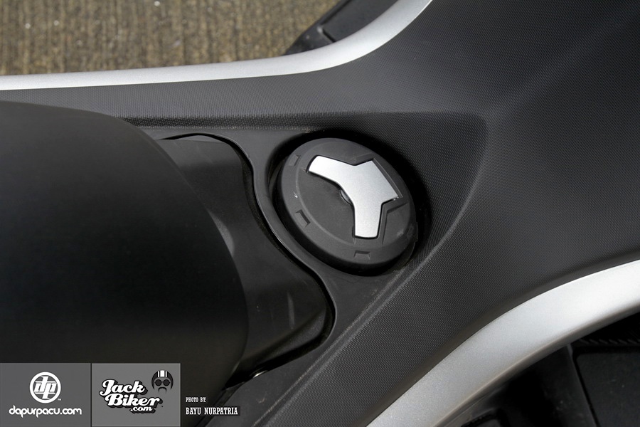 | Nắp bình xăng ở ngay bụng xe, dễ dàng thao tác mở nắp để đổ xăng mà không cần bật yên xe. Dung tích bình xăng 6 lít. |