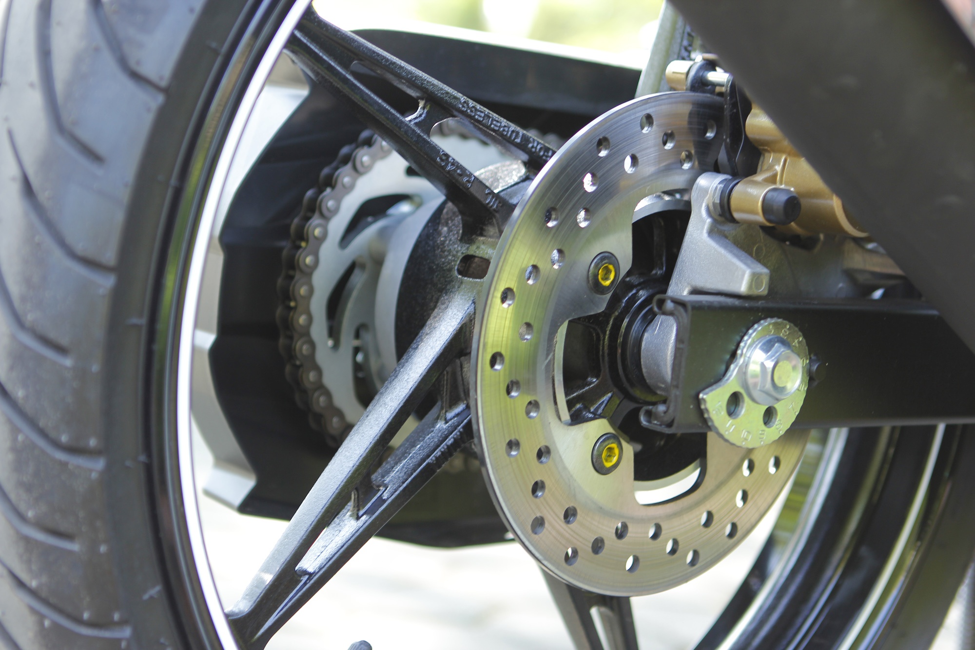 | Trang bị an toàn cho xe gồm có phanh đĩa thủy lực phía trước. Mâm xe 5 chấu đơn thể thao. |