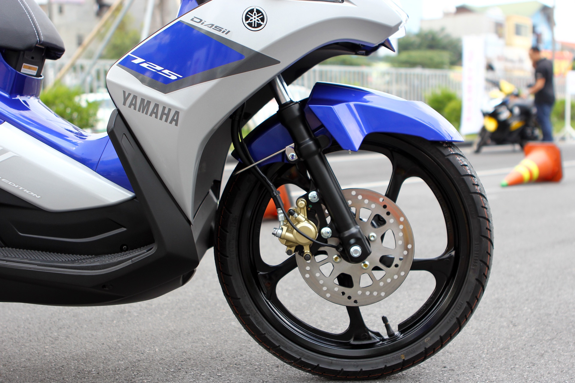| Nouvo Fi 2015 được trang bị phanh đĩa trước. Lốp xe kích thước 70/90-16 phía trước và 90/80-16 phía sau. |