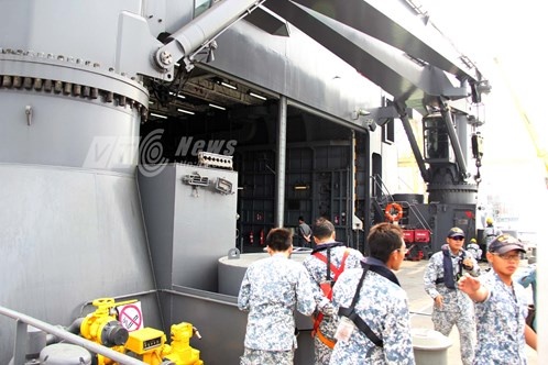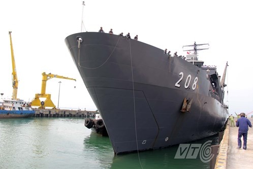 | Đến 9h, tàu tiến vào tiến vào cầu cảng Tiên Sa (Đà Nẵng). |