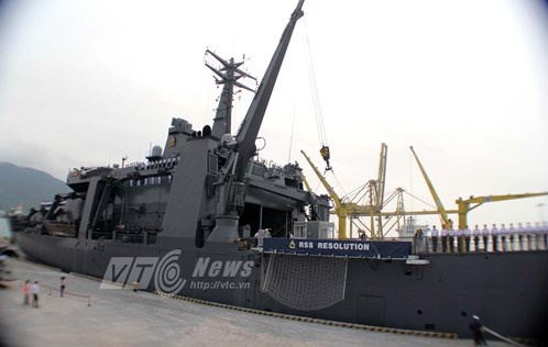 | Trong trong khuôn khổ hoạt động trao đổi, hợp tác giữa hải quân hai nước Việt Nam - Singapore sáng 4/3, tàu huấn luyện RSS Resolution 208, một trong 4 tàu huấn luyện đầy uy lực của lực lượng Hải quân Singapore cùng 250 sỹ quan, thủy thủ đã đến Đà Nẵng. |