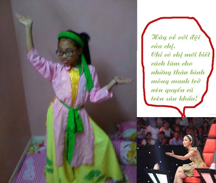 Hình ảnh hài hước được fan chế tặng cho 2 thầy trò: "Hãy về đội của chị. Chỉ chị mới biết cách làm cho những thân hình mong manh trở nên quyến rũ trên sân khấu". |