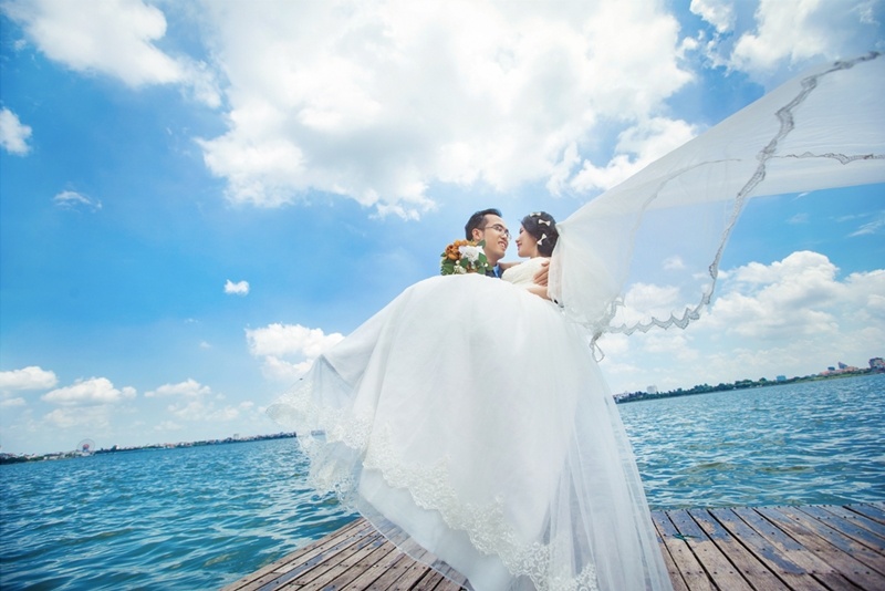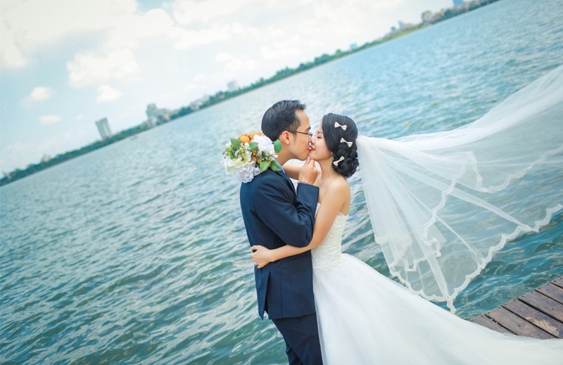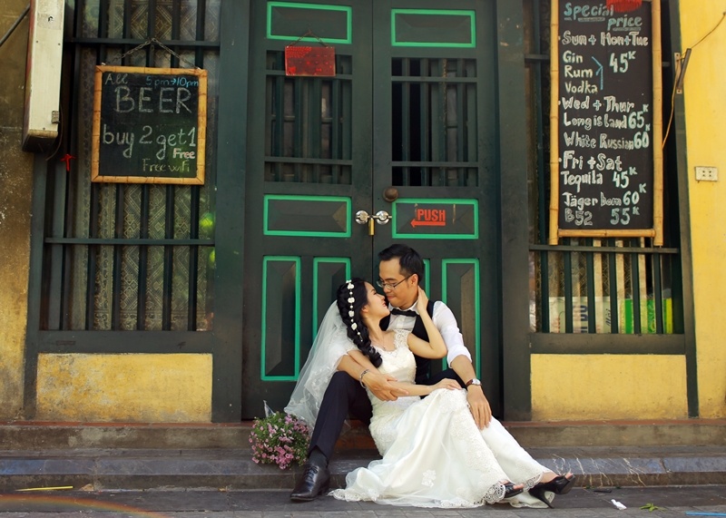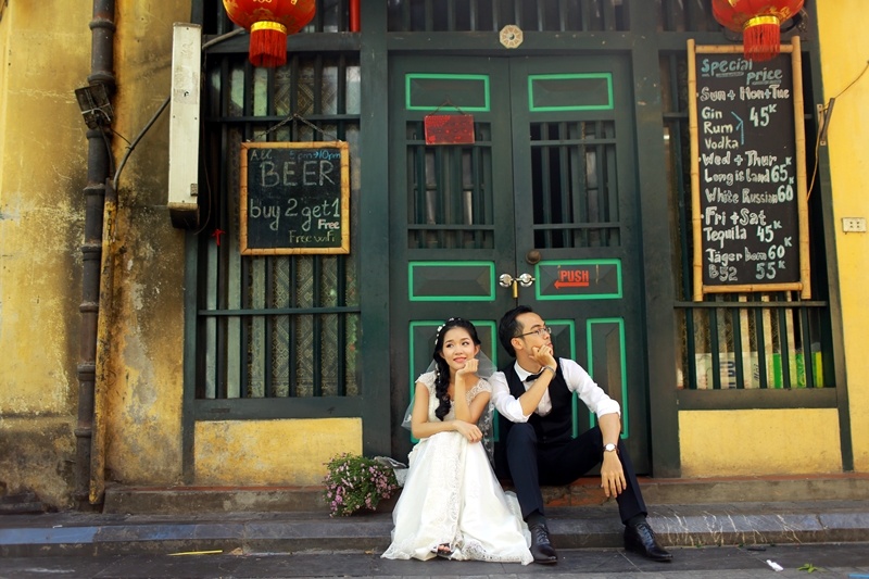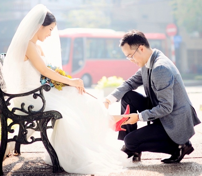 Cặp đôi biết đến nhau như chuyện cổ tích qua lần xem tivi của chú rể này đã thực hiện bộ ảnh cưới công phu tại cả hai thành phố lớn: Sài Gòn và Hà Nội.