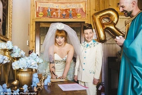 | Đám cưới được tổ chức một cách rất ngọt ngào, sôi động, đúng như tính cách, lối sống phóng khoáng của cả 2 người. 2 người tự ký vào giấy đăng ký kết hôn trước sự chứng kiến của 1 vị giáo mục. |