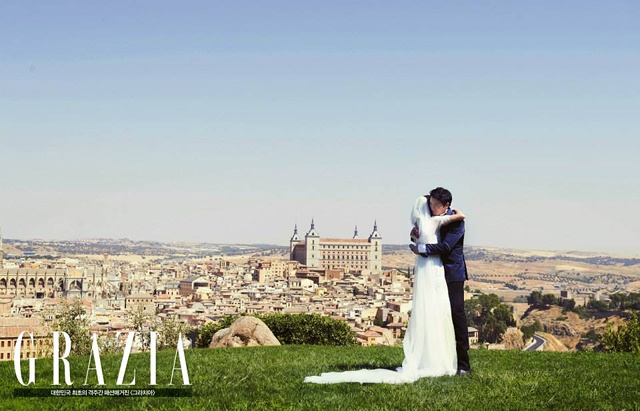 | Trước lễ cưới diễn ra ngày 27/9, Hoa hậu Hàn Quốc 2000 Lee Bo Young và nam diễn viên điển trai Ji Sung đã có những ngày vui vẻ ở Tây Ban Nha để chụp ảnh cưới. |