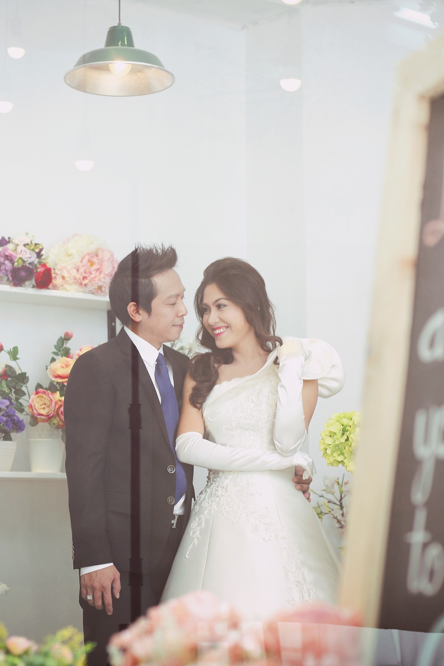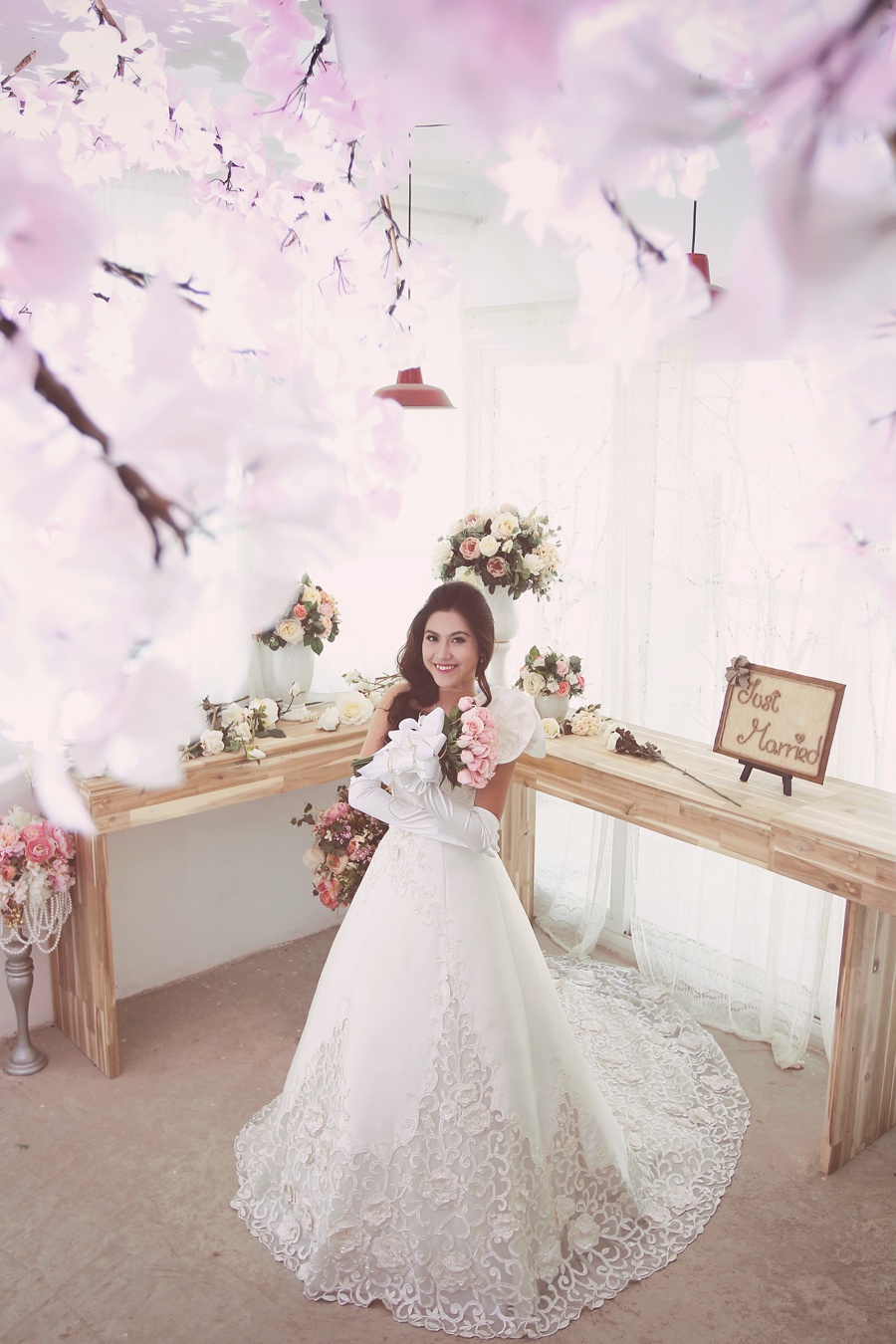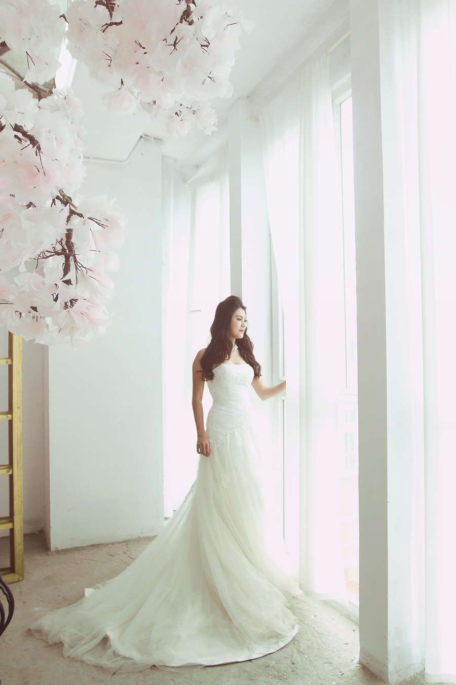 Bộ ảnh cưới của Hoàng Yến và chồng được thực hiện tại những dịa điểm quen thuộc tại TP.HCM. Cô dâu diện váy cưới gam màu trắng trong trẻo, là gam màu mà Hoàng Yến yêu thích. Đây cũng là tông màu chủ đạo cho toàn bộ album cưới.
