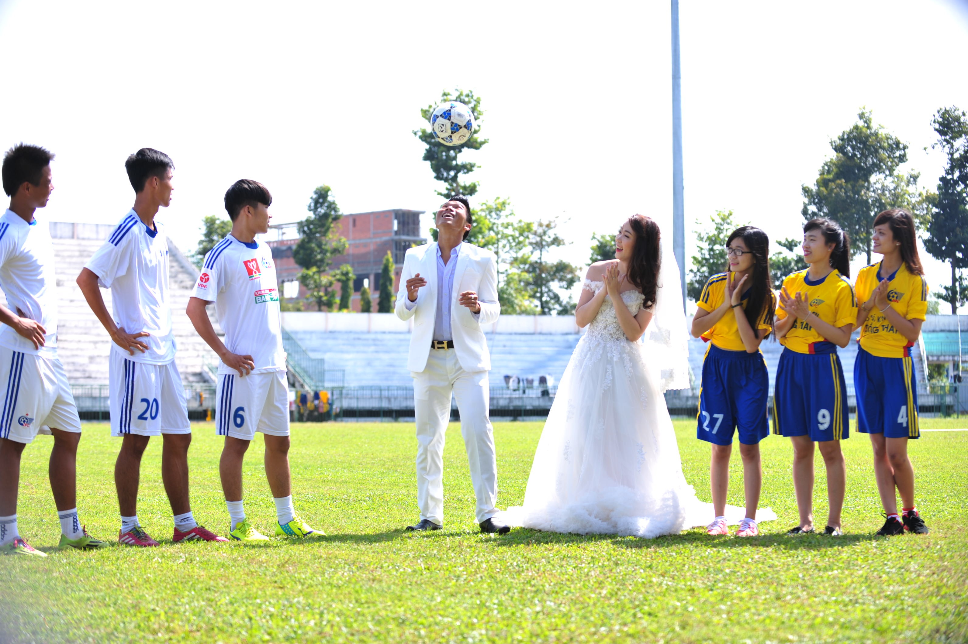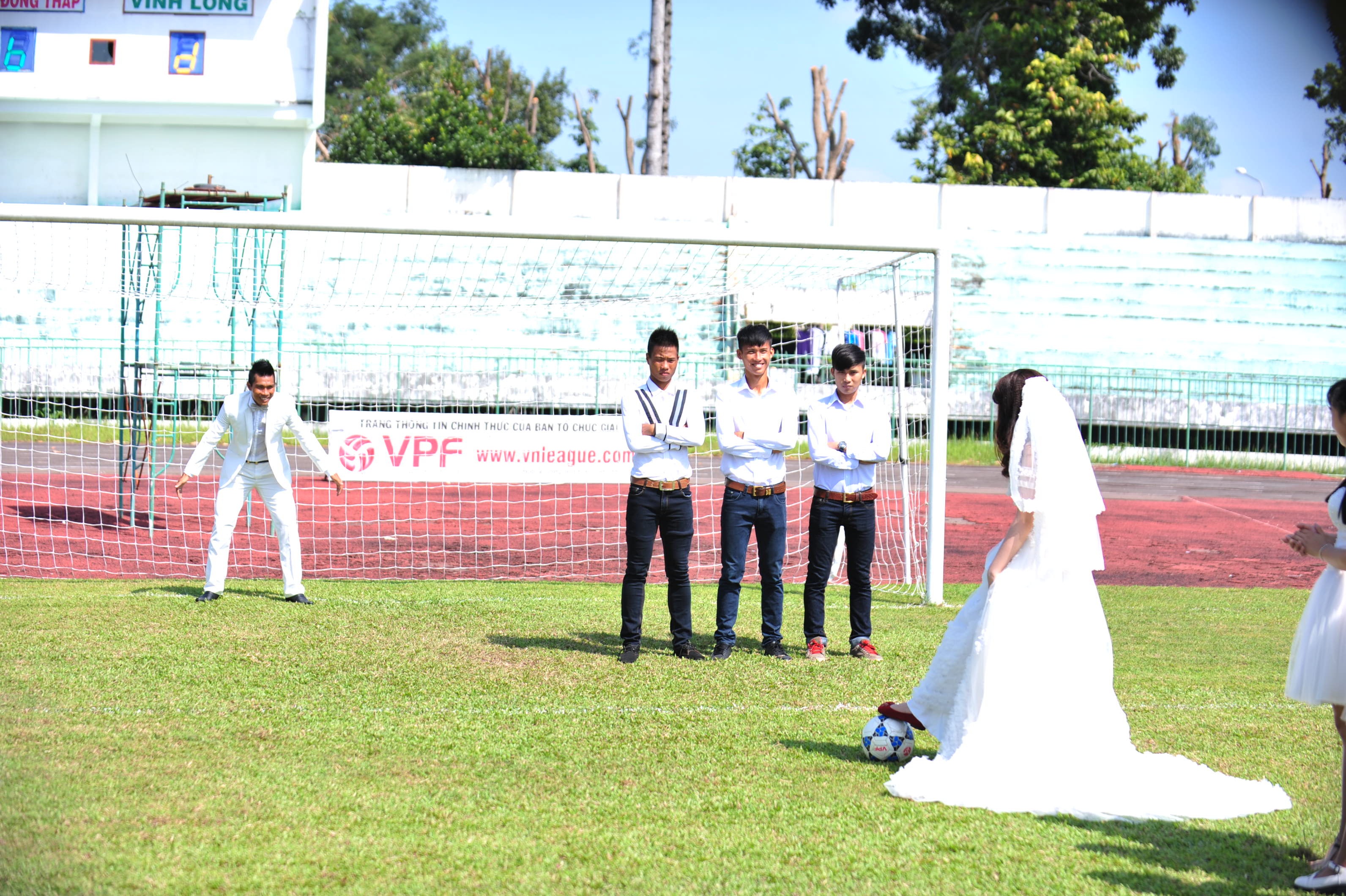 | Để chuẩn bị cho ngày trọng đại, đôi uyên ương cùng nhau thực hiện bộ ảnh cưới trên sân Cao Lãnh để gợi lại kỷ niệm lần đầu hai người gặp nhau tại đây. |