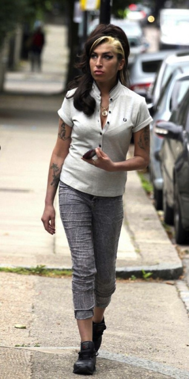 | Hơn 1 tuần trước khi xảy ra cái chết đột ngột của nữ ca sĩ người Anh Amy Winehouse vào ngày 23/7/2011, cánh săn ảnh còn trông thấy cô đi dạo gần nhà ở London. Khi đó, trông Amy không có biểu hiện bất thường về tâm lý lẫn thể trạng. |