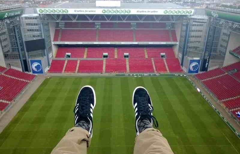 | “Đây là lần đầu tiên tôi được chụp từ nóc sân vận động quốc gia Đan Mạch. Lần tới rất có thể cảnh quan bên dưới sẽ là một trận bóng đang diễn ra” - Kenneth Nguyễn chia sẻ. Có vẻ như anh không nghĩ đây là một góc chụp cực kỳ “liều lĩnh”. |