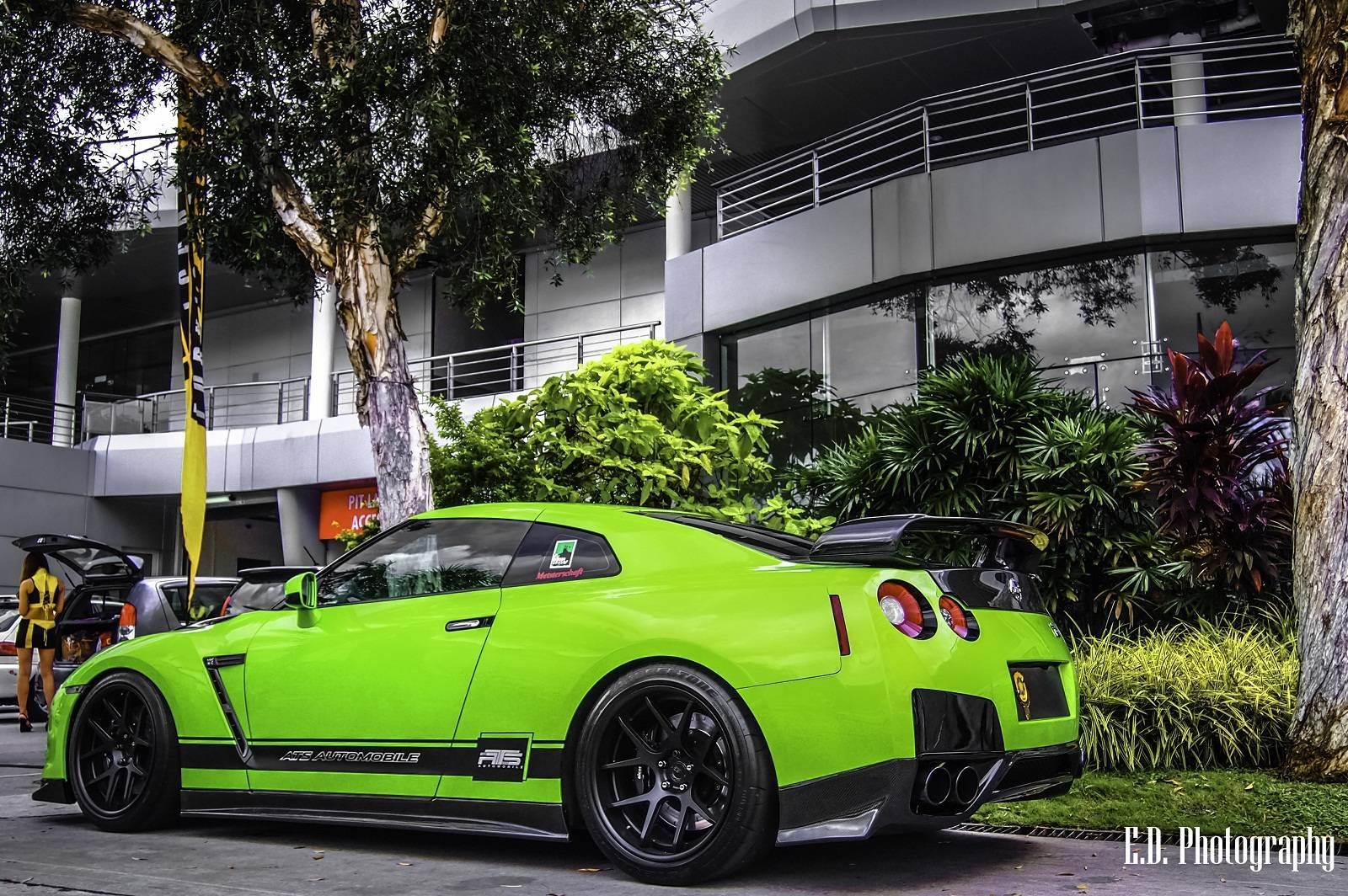 | Siêu xe Nissan GT-R xanh lá độc đáo của một khách xem đua xe tại trường đua Sepang, Malaysia. Ảnh: E.D. |