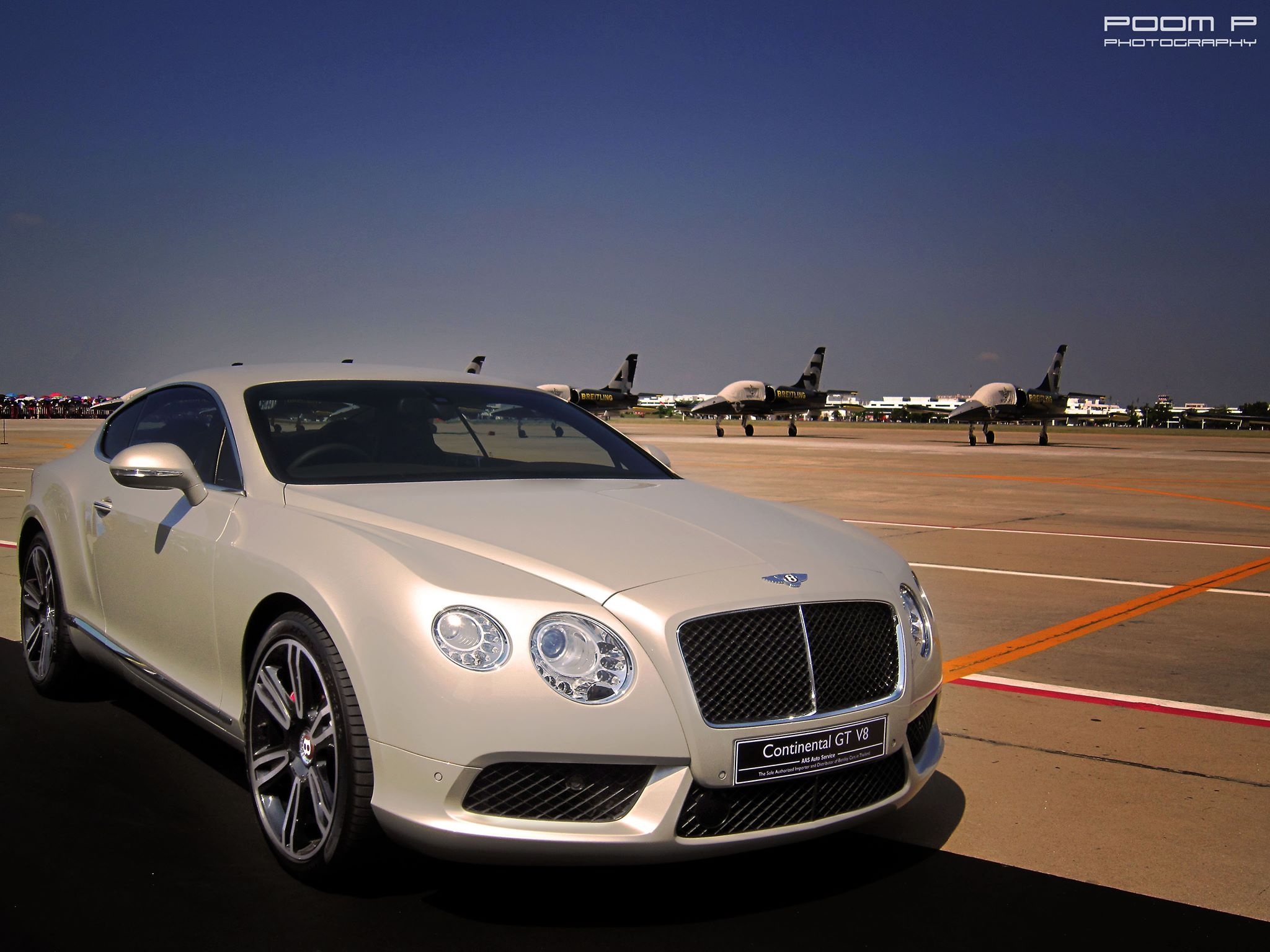 | Mẫu xe siêu sang Bentley Continental GT V8 đọ dáng cùng với dàn máy bay. Ảnh: Poom P. |