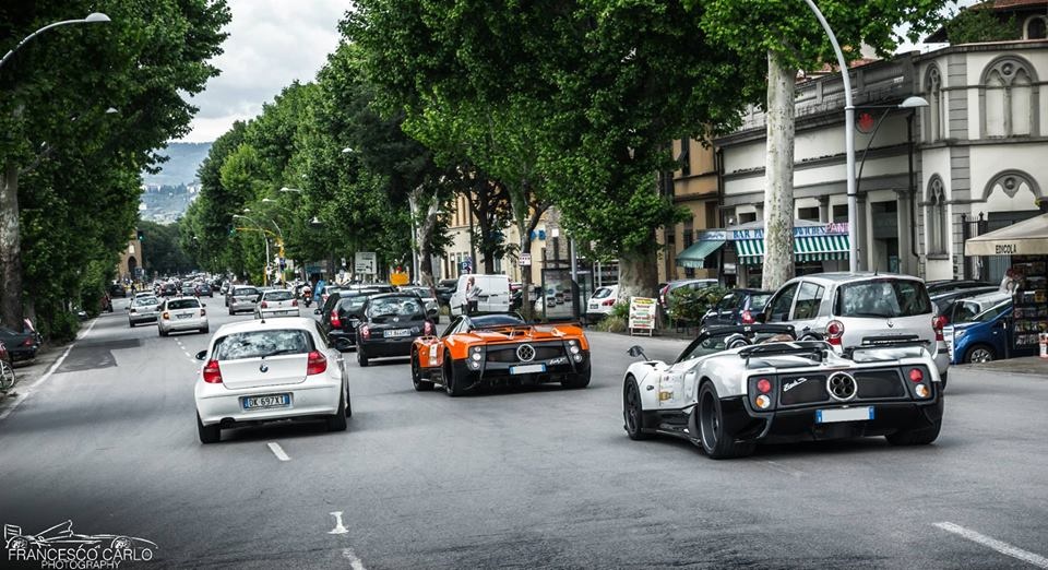 | Bộ đôi Pagani Zonda ở Mille Miglia, Italia. |
