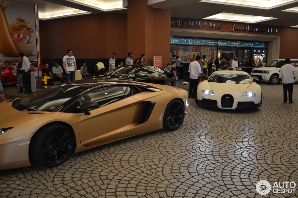 | Bugatti Veyron 16.4 và Lamborghini Aventador ở Dubai. |