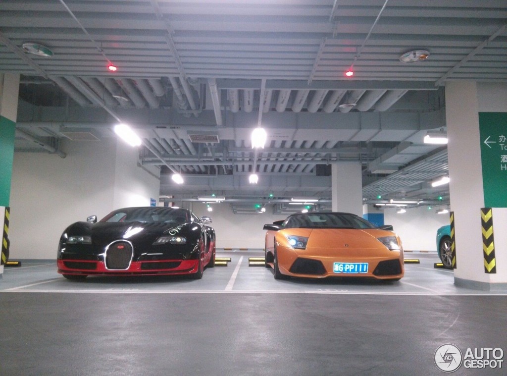 Bugatti Veyron 16.4 Grand Sport Vitesse và Lambroghini Murcielago LP640 Roaster ở Thượng Hải, Trung Quốc.