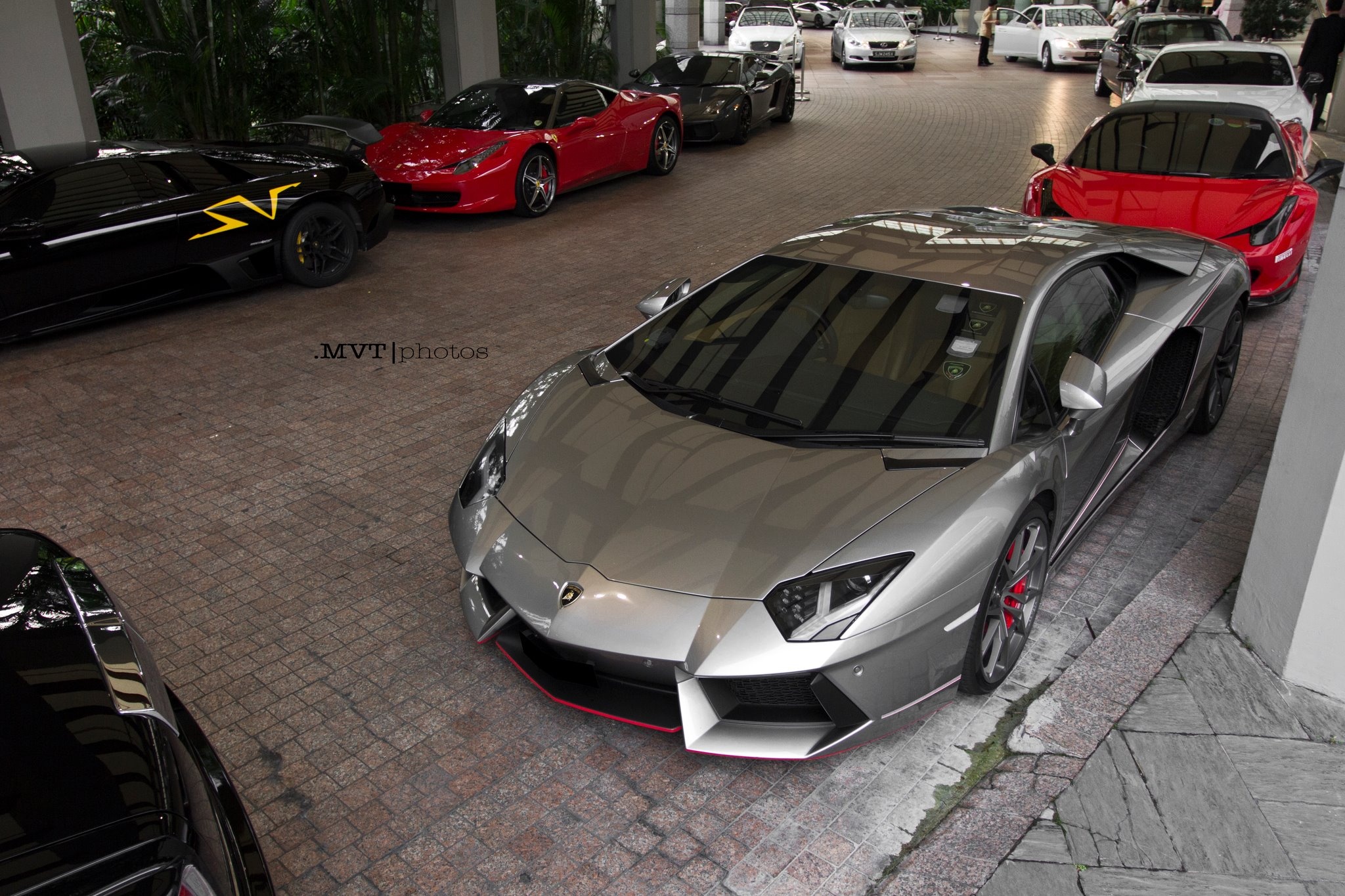 | Một bãi đỗ xe khác cũng có sự xuất hiện của rất nhiều siêu xe và xe sang. Có thể nhận thấy những siêu xe nổi bật nhất của Lamborghini và Ferarri trong hình. Ảnh: MVT. |