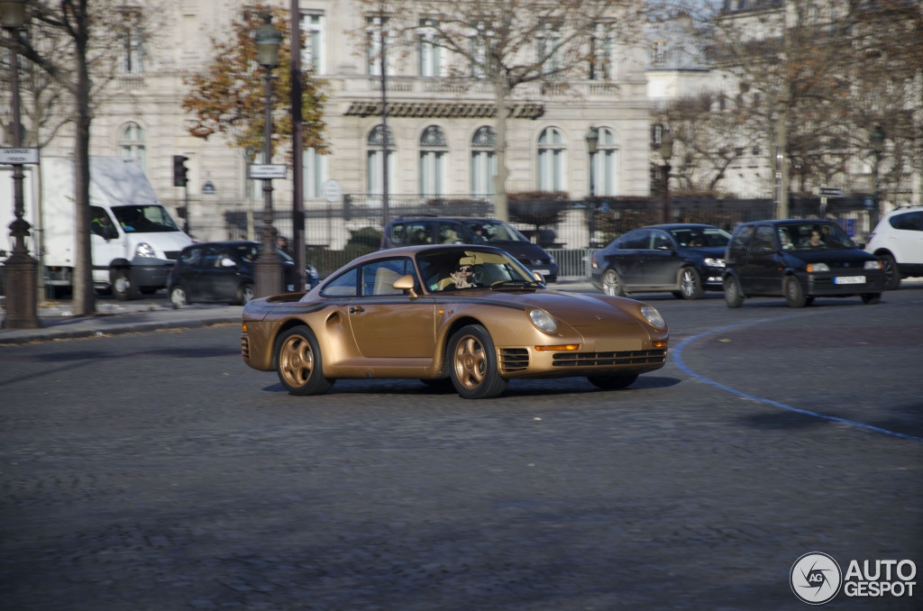 | Một chiếc Porsche 959 màu đồng độc đáo trên đường phố Paris. Mẫu xe thể thao của Đức sở hữu sức mạnh 450 mã lực, có khả năng đạt vận tốc tối đa 321 km/h. Ảnh: Autogespot. |