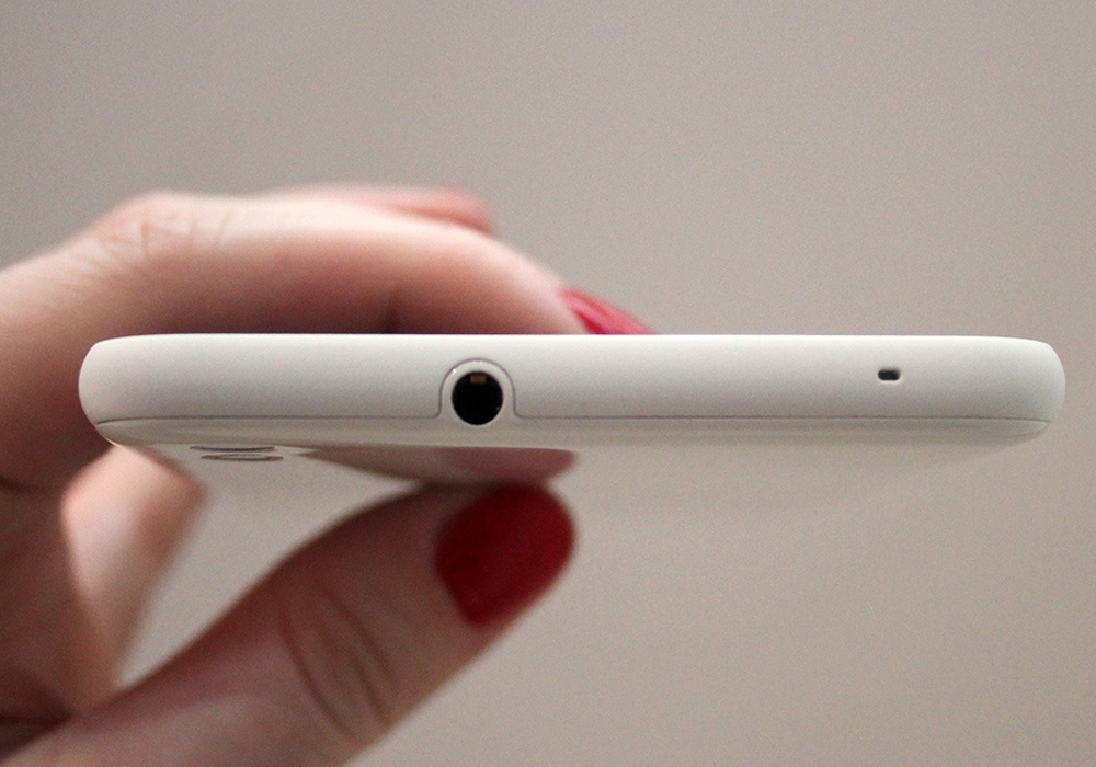Nhìn từ mặt sau, người ta rất dễ liên tưởng đến một chiếc iPhone 5C phóng lớn với vỏ nhựa bóng hơi giống chất liệu sứ và cụm camera nhỏ đặt ở góc trên bên trái màn hình.