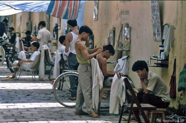 | Nghề cắt tóc nam rất thịnh hành thời bấy giờ, các tiệm quán mọc lên san sát mà không mấy khi vắng khách. Ngoài các vật dụng cần thiết, nhiều chủ quán cắt tóc còn đầu tư ảnh các kiểu tóc "mô-đen" cho khách hàng chọn lựa. |