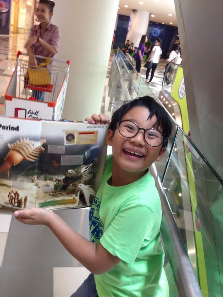 | Ông bố hai con chia sẻ hình ảnh phấn khích của Tê Giác khi "tậu" được quyển sách mới trên trang cá nhân. Cậu cả nhà Hoàng Bách đặc biệt thích đọc sách. |