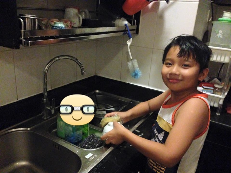 | Tê Giác giúp bố mẹ rửa bát. Trong chương trình, không ít lần cậu bé khiến khán giả và Hoàng Bách xúc động vì những hành động quan tâm, chia sẻ với bố. Ở tập đầu, vì muốn bố Hoàng Bách ngủ ngon giấc, Tê Giác quyết định ngồi chờ bố hơn nửa tiếng đồng hồ để cùng ăn cơm. |