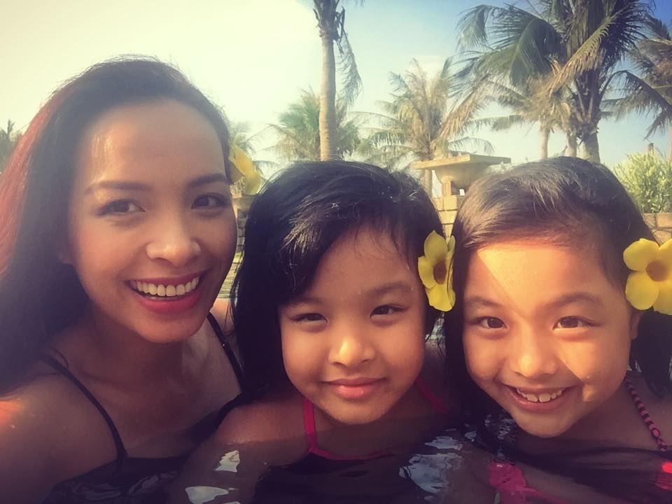 | Khoảnh khắc vui vẻ của Suti bên mẹ Thuý Hạnh và chị gái Suli. Trong khi Suli thừa hường nhiều nét của nhạc sĩ Minh Khang, Suti lại được nhận xét giống mẹ. |