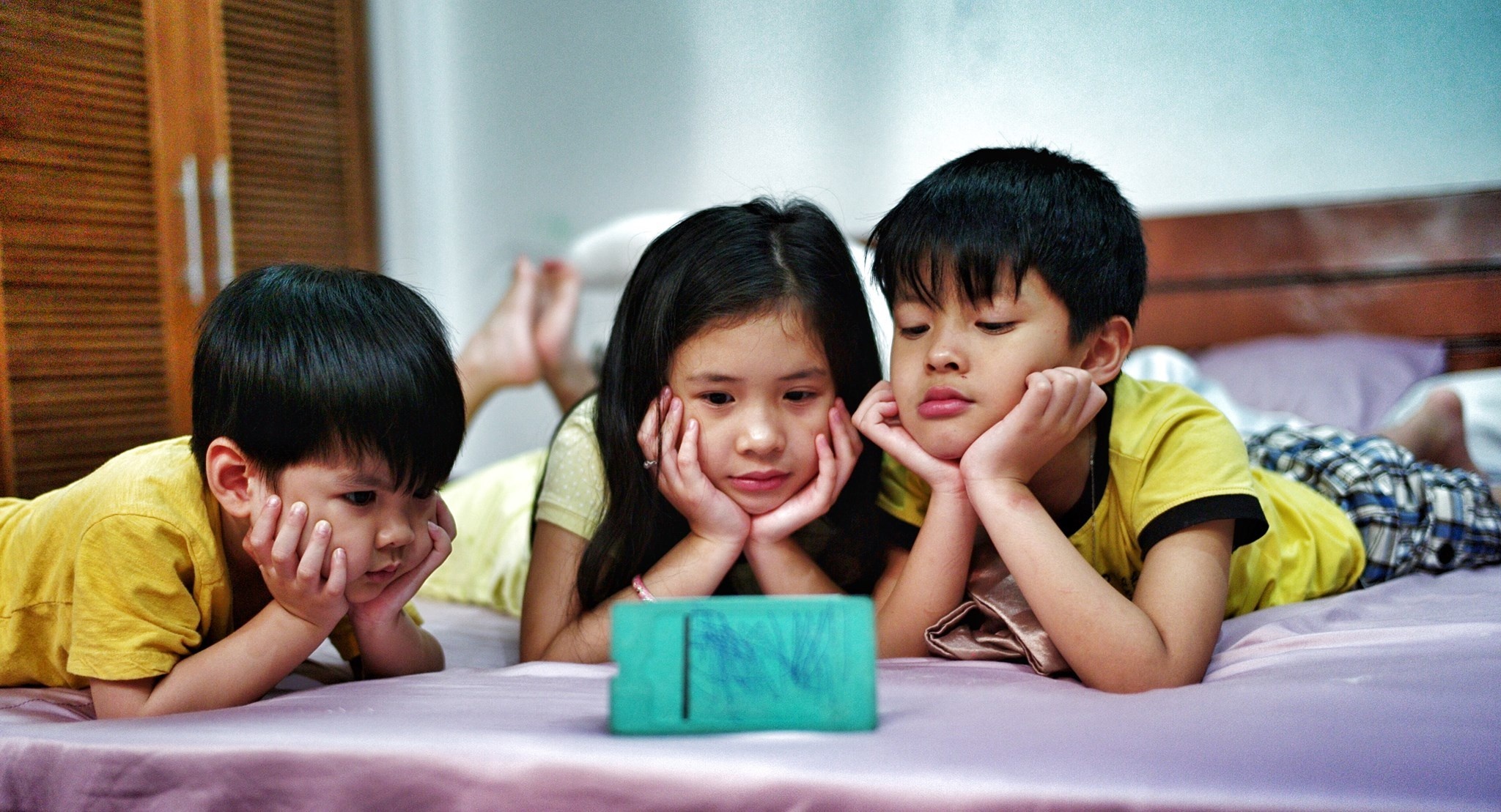 | Khoảnh khắc tinh nghịch của Bảo Anh bên bố và hai em trai.