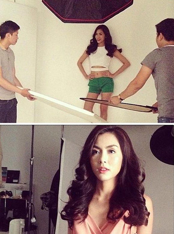 | Ảnh hiếm hoi Hà Tăng khoe eo thon. |