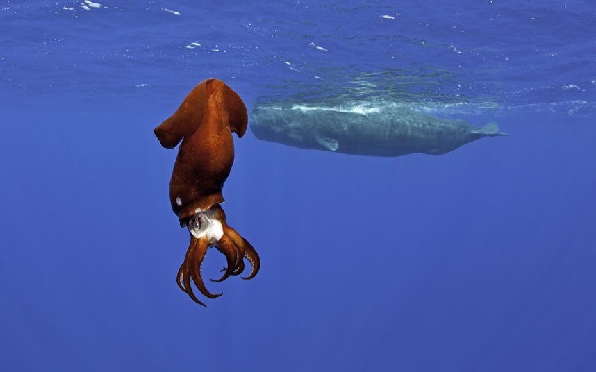 Cá nhà táng phân bố trên khắp các đại dương và chủ yếu ăn mực - thậm chí các loài mực khổng lồ. Đôi khi, chúng cũng ăn các loài cá khác. Với khả năng lặn sâu tới 3 km, chúng cũng là loài động vật có vú lặn sâu nhất thế giới. Ảnh: Barcroft Media