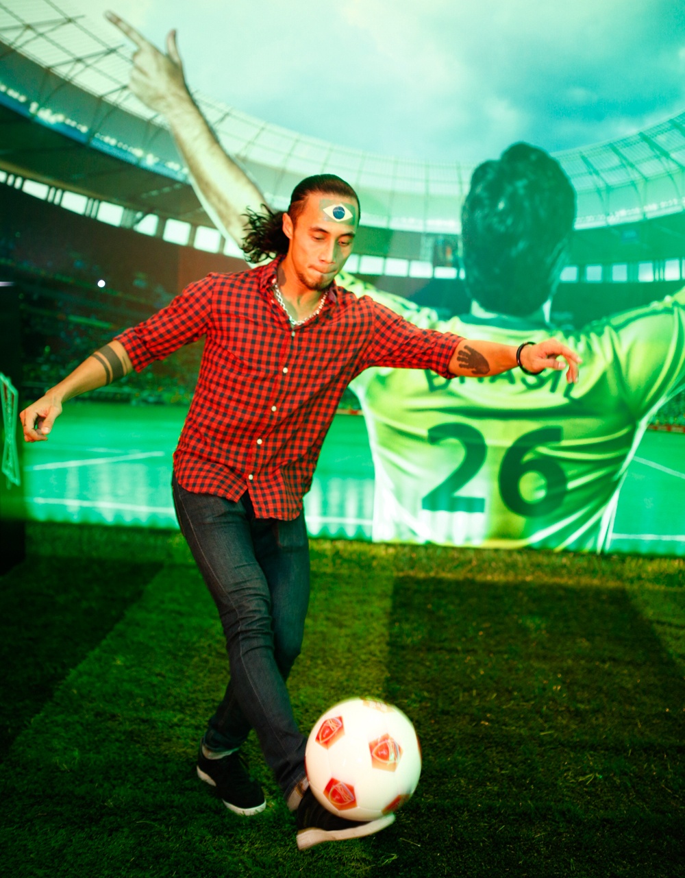 | Không khí đêm tiệc được khuấy động bởi màn trình diễn của các cầu thủ bóng đá, các vũ công samba, và các nghệ sĩ chơi bộ gõ theo phong cách Mỹ Latin, đem đến cho người hâm mộ một bữa tiệc mang đậm phong cách Brazil để khai mạc mùa lễ hội FIFA World Cup 2014 tại Việt Nam. |