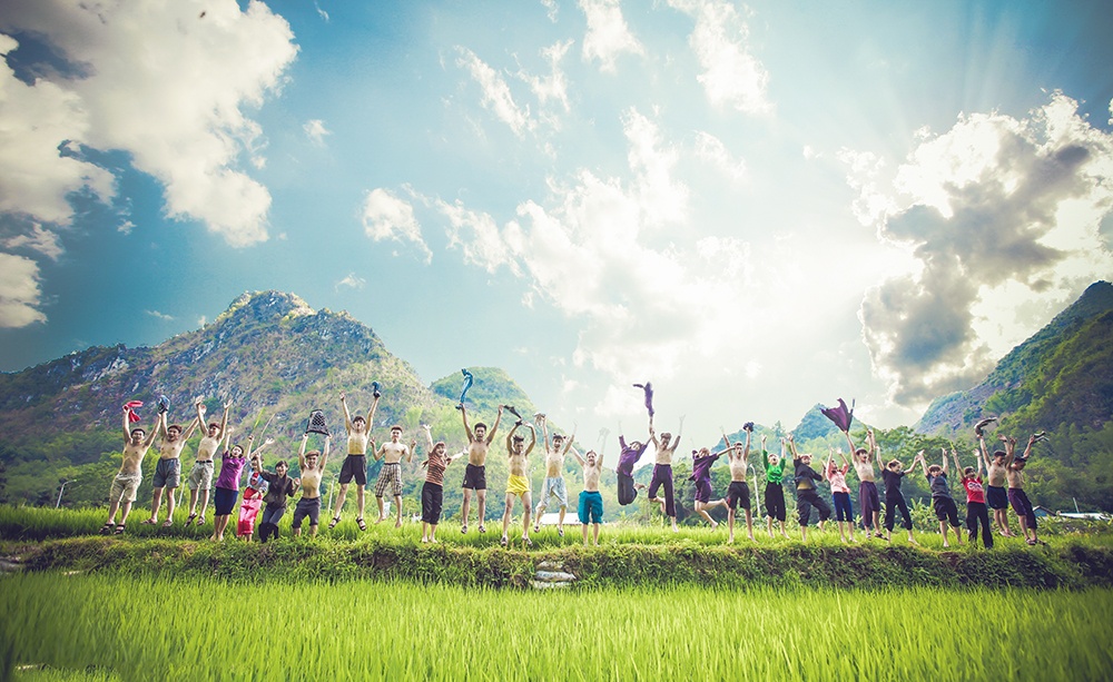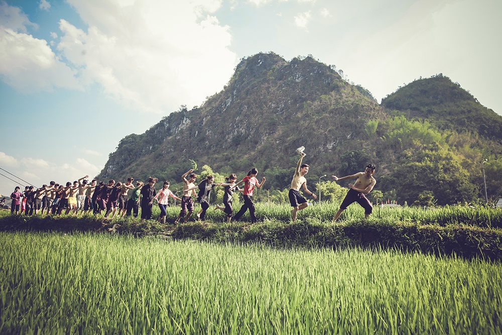 Khoảnh khắc vô tư trên cánh đồng của tập thể lớp 12K.