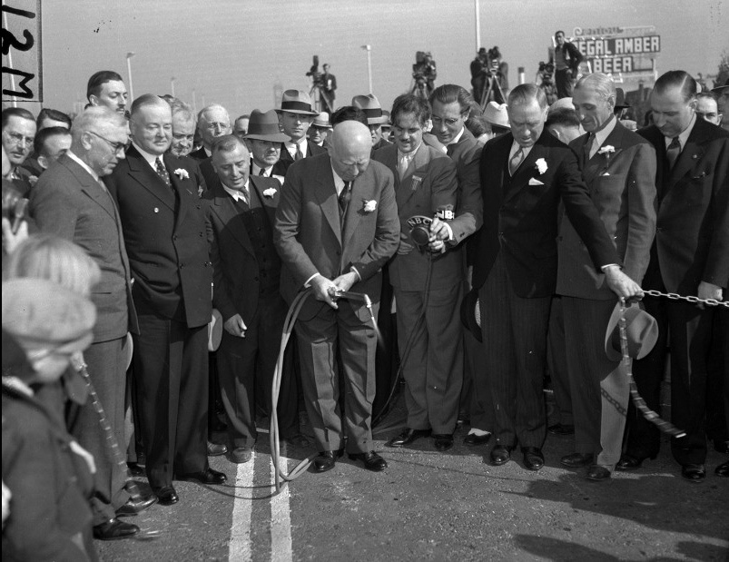 Khác với những công trình bình thường, các quan chức cắt xích thay vì cắt băng để khánh thành cây cầu. Ảnh: Corbis |