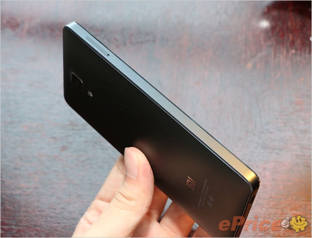 Cạnh phải của model này có nút nguồn và tăng giảm âm lượng. Một vài thông số khác về cấu hình của Mi4 bao gồm RAM 3GB, pin 3.080 mAh.