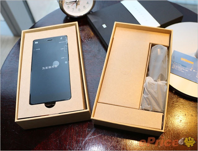 Mi4 dùng hộp đựng bằng giấy giống các sản phẩm Galaxy của Samsung.